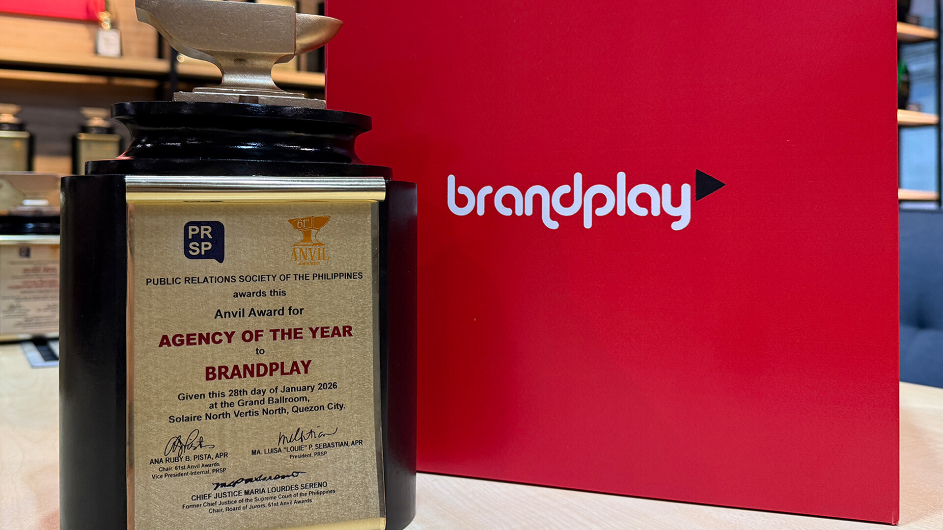 Brandplay, one of the agencies in PAGEONE Group, was named Agency of the Year at the 61st Anvil Awards of the Public Relations Society of the Philippines, after winning a total of 26 trophies across multiple categories.